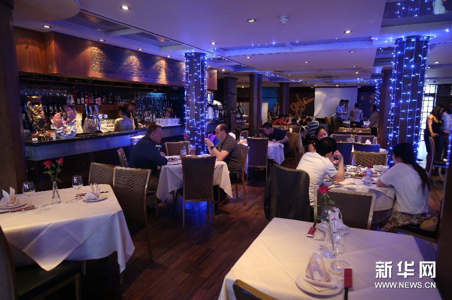 7月21日,人们在伦敦奥运会乒乓球比赛场馆附近的一家中餐馆用餐。这家中餐馆离比赛场馆不到500米,目前消费水平为人均15镑左右。在奥运会期间有调价准备,但调价幅度尚未确定。这里以粤菜为主,尤其以点心闻名周边。家常豆腐8镑,腐乳空心菜7镑,葱烧羊肉煲15镑,干炒牛河11镑。餐厅目前收取12%的服务费。经常来此消费的中国人和外国人各占一半。新华社记者孟永民摄