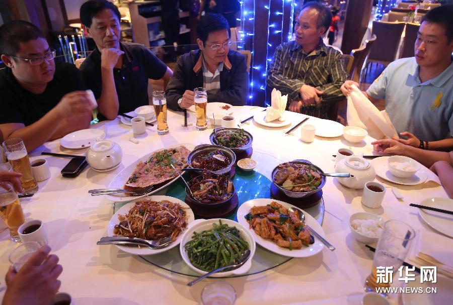 7月21日,人们在伦敦奥运会乒乓球比赛场馆附近的一家中餐馆用餐。这家中餐馆离比赛场馆不到500米,目前消费水平为人均15镑左右。在奥运会期间有调价准备,但调价幅度尚未确定。这里以粤菜为主,尤其以点心闻名周边。家常豆腐8镑,腐乳空心菜7镑,葱烧羊肉煲15镑,干炒牛河11镑。餐厅目前收取12%的服务费。经常来此消费的中国人和外国人各占一半。新华社记者孟永民摄