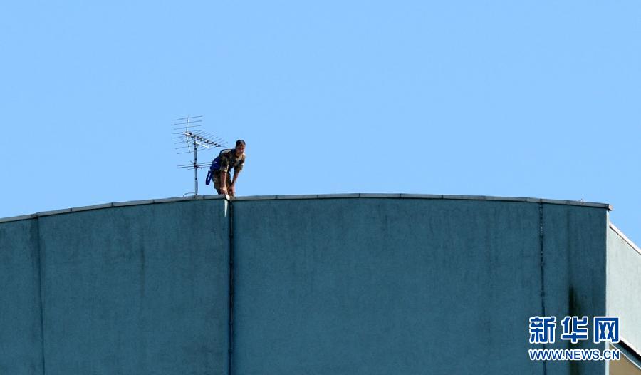 7月23日,在英国伦敦东郊的莱顿斯通,一名士兵在部署了导弹的弗雷德威格大楼楼顶执勤。为保障伦敦奥运会的安全,英国国防部在伦敦周围部署导弹,并使用飞艇在奥林匹克公园一带空中巡逻。 新华社记者曾毅摄