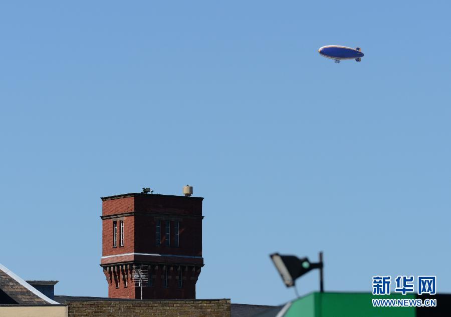 7月23日,在英国伦敦奥林匹克公园外,一架巡逻飞艇从部署有导弹的列克星敦建筑楼上空飞过。为保障伦敦奥运会的安全,英国国防部在伦敦周围部署导弹,并使用飞艇在奥林匹克公园一带空中巡逻。 新华社记者曾毅摄