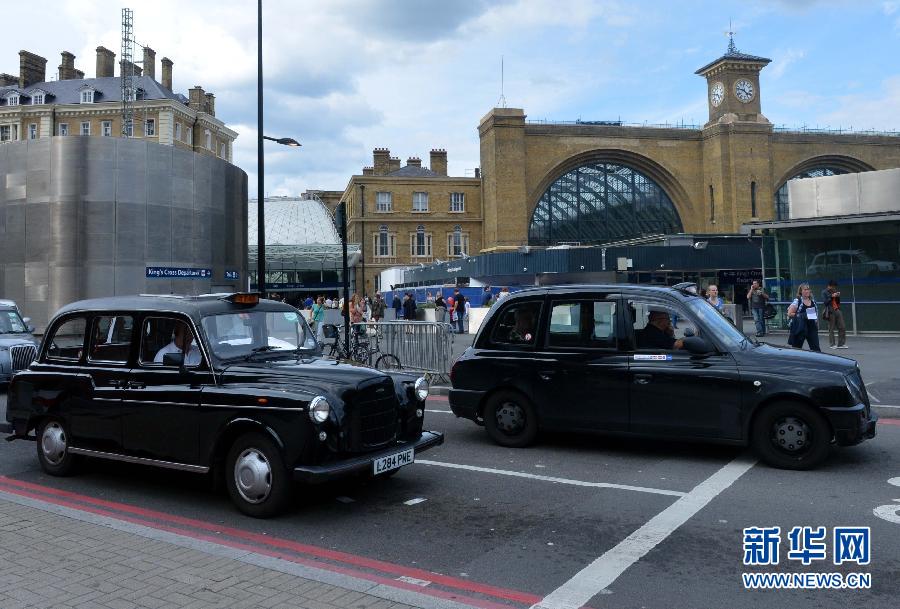 7月21日,两辆出租车在伦敦街头行驶。伦敦出租车是伦敦的另一张城市名片,它的外表虽然古板,可车厢内部空间大、安全性高。新华社记者公磊摄