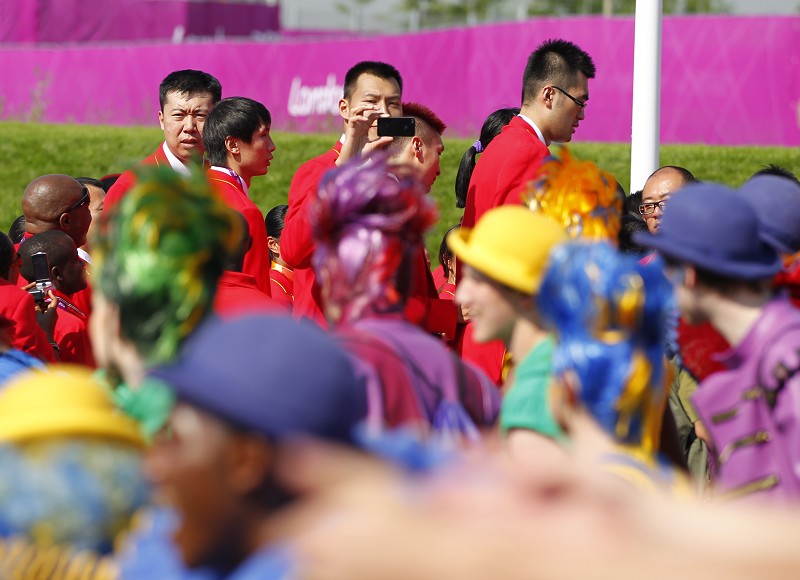 7月25日,中华人民共和国国旗在仪式上升起。当日,中国体育代表团在伦敦奥运会奥运村举行升旗仪式。