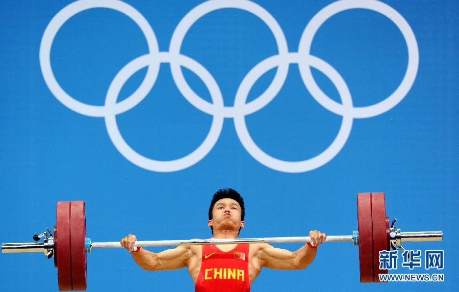 7月29日,吴景彪在比赛中。当日,在2012年伦敦奥运会举重男子56公斤级比赛中,中国选手吴景彪以289公斤的总成绩获得银牌。新华社记者公磊摄