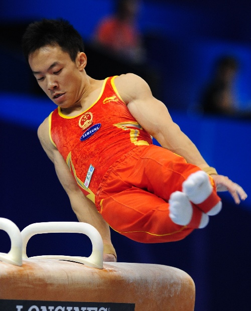 “鞍马之王”郭伟阳在今天的鞍马比赛中顶住压力,不负众望(资料图)