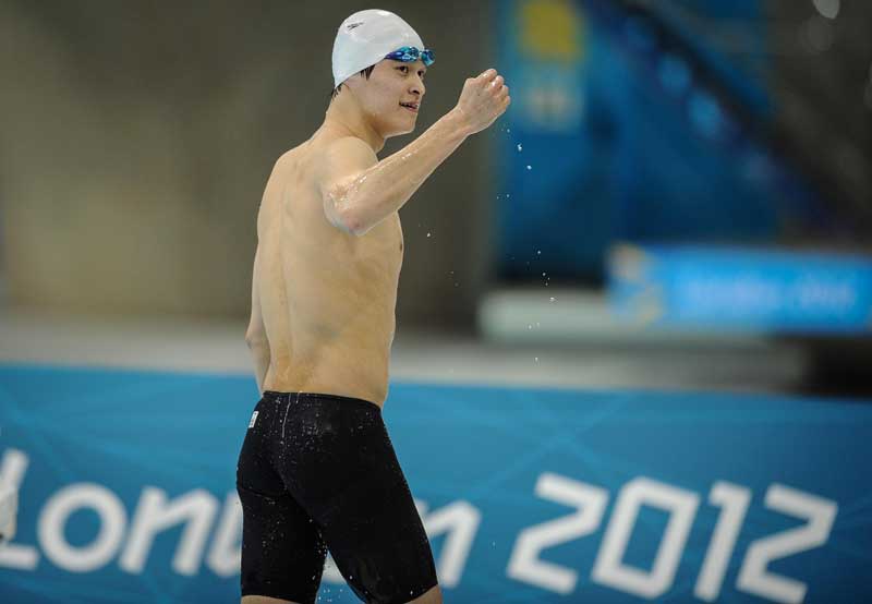 7月30日,中国选手孙杨在比赛后。当日,在伦敦奥运会男子200米自由泳决赛中,中国选手孙杨以1分44秒93的成绩获得并列亚军。新华社记者刘大伟摄