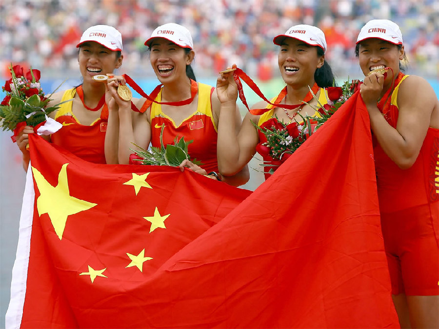 中国姑娘在北京奥运会上开创中国赛艇新纪元(资料图片)。