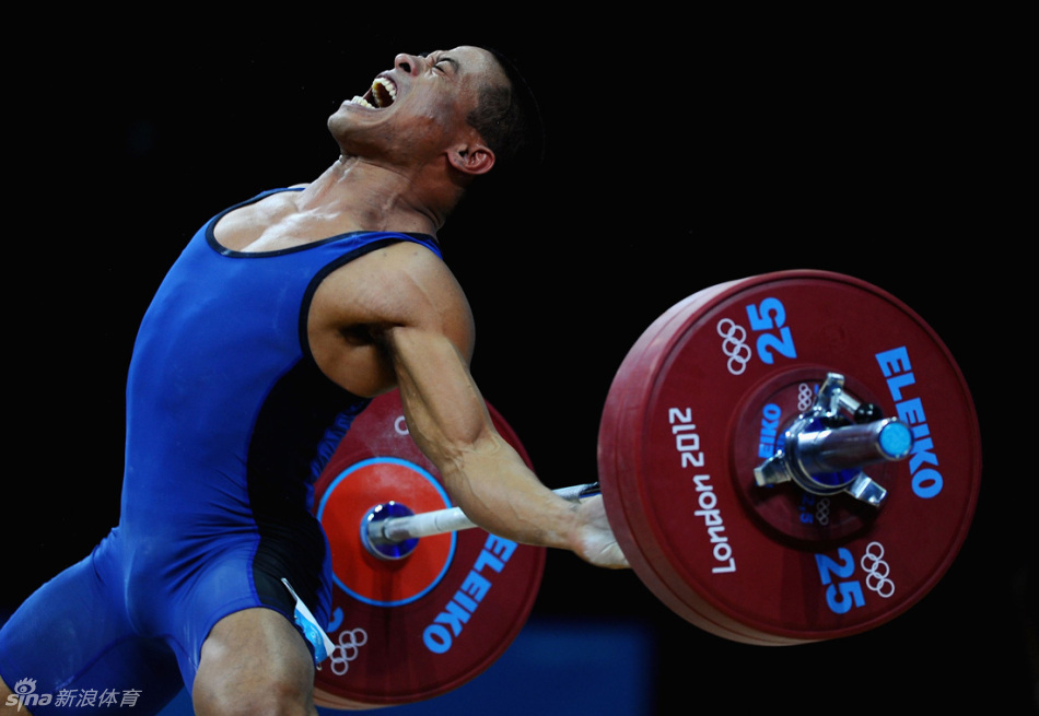 男子62公斤级举重比赛中,罗尼西亚选手用力托举。