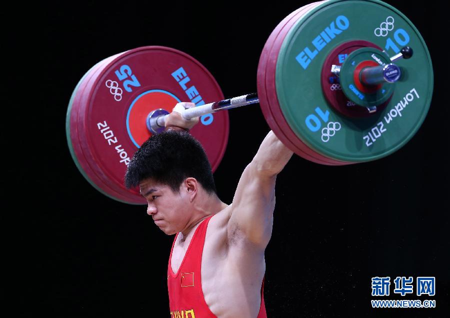 7月31日,中国选手林清峰在比赛中。当日,在伦敦奥运会举重男子69公斤级比赛中,中国选手林清峰夺得冠军。 新华社记者 陈建力 摄