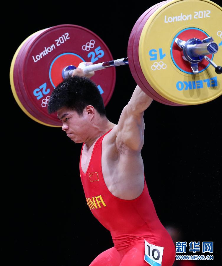 7月31日,中国选手林清峰在比赛中。当日,在伦敦奥运会举重男子69公斤级比赛中,中国选手林清峰以344公斤的总成绩夺得冠军。 新华社记者 陈建力 摄