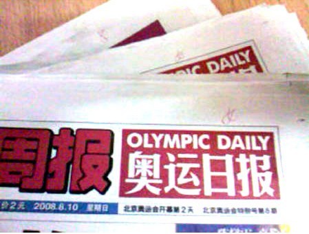 8号8日晚,举世瞩目的北京第二十九届奥林匹克运动会开幕式在鸟巢隆重举行,老公专程出门给我取回报纸,守在电视机前的我迫不及待地抢过来一看,散发着油墨香的首页上方赫然被老板用红色水笔写了个“女”字,不禁莞尔。