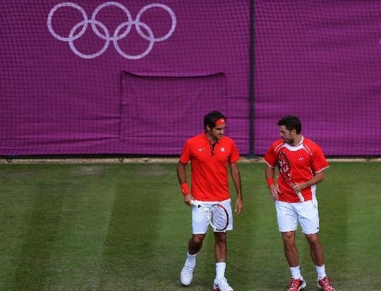 瞬间十:瑞士天王费德勒和同胞瓦林卡止步男双,成功卫冕的男双金牌的希望就此破灭。