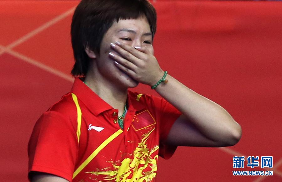 8月1日,李晓霞在夺冠后激动落泪。当日,在伦敦奥运会乒乓球女子单打决赛中,中国选手李晓霞以4比1战胜队友丁宁,夺得冠军。夺冠后李晓霞赛场激动落泪。