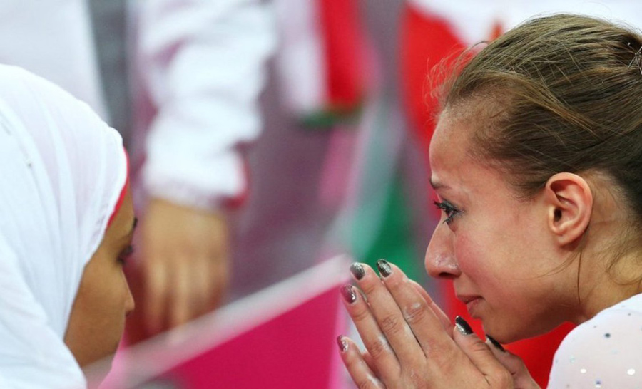 2012年7月29日,伦敦,2012伦敦奥运会次日体操,埃及选手受伤下场痛哭伤怀。