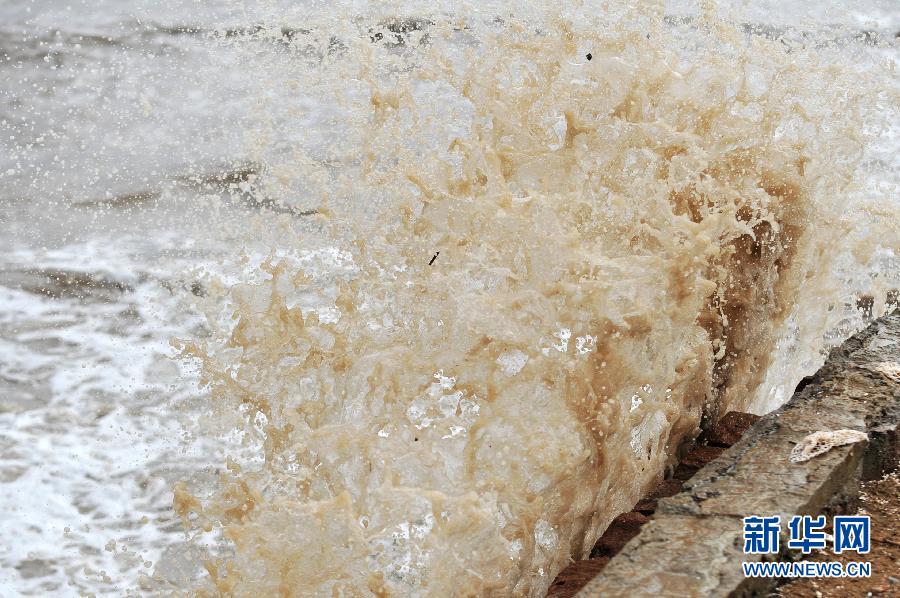 这是台风登陆点福鼎市秦屿镇沿岸的大浪(8月3日摄)。 8月3日6时50分前后,台风“苏拉”在福建省福鼎市秦屿镇沿海登陆,登陆时中心附近最大风力10级(25米/秒)。预计“苏拉”将继续以每小时15公里左右的速度向西北方向移动,强度逐渐减弱。新华社记者 魏培全 摄