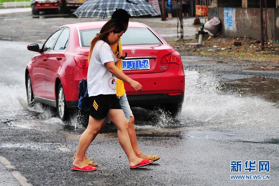 由于连下暴雨,福建省霞浦县牙城镇街头积水(8月3日摄)。 8月3日6时50分前后,台风“苏拉”在福建省福鼎市秦屿镇沿海登陆,登陆时中心附近最大风力10级(25米/秒)。预计“苏拉”将继续以每小时15公里左右的速度向西北方向移动,强度逐渐减弱。新华社记者 魏培全 摄