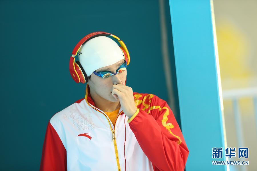 8月4日,中国选手孙杨在比赛中出场。当日,中国选手孙杨参加2012伦敦奥运会男子1500米自由泳决赛。 新华社记者费茂华摄