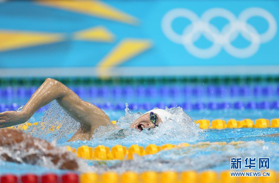 8月4日,中国选手孙杨在比赛中。当日,在2012伦敦奥运会男子1500米自由泳决赛中,中国选手孙杨获得冠军。 新华社记者费茂华摄
