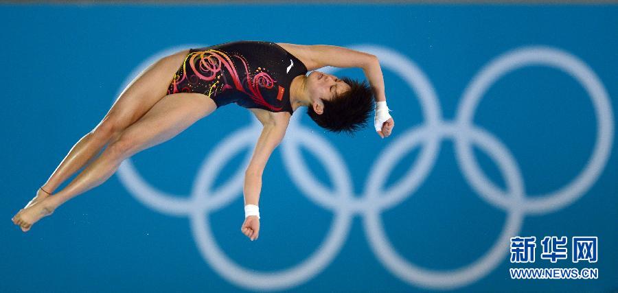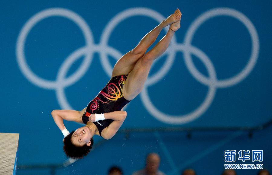8月9日,中国选手陈若琳在比赛中。当日,在伦敦奥运会女子10米跳台决赛中,陈若琳以422.30分的成绩夺得冠军。 新华社记者王毓国摄