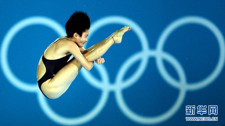 8月9日,中国选手陈若琳在比赛中。当日,在伦敦奥运会女子10米跳台决赛中,陈若琳以422.30分的成绩夺得冠军。 新华社记者王毓国摄