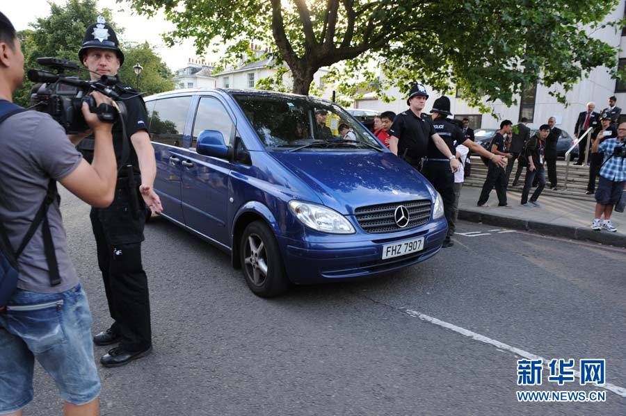 伦敦时间8月9日,刘翔在伦敦惠灵顿医院接受手术治疗,这家医院是伦敦最好的私立医院。为刘翔做手术的主刀大夫是尼古拉斯·卡伦,他是惠灵顿医院足踝外科的顾问级专家。手术做了1小时19分钟,据医生介绍手术非常成功,刘翔将留院观察两天之后回国。图为手术结束后刘翔父亲等人离开医院。新华网 刘寰摄