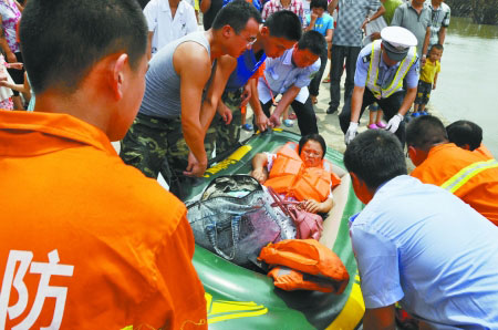 1小时后,消防官兵划着皮划艇,将孕妇艰难地“护”出积水区。上午11点15分,孕妇终于被送到明州医院。