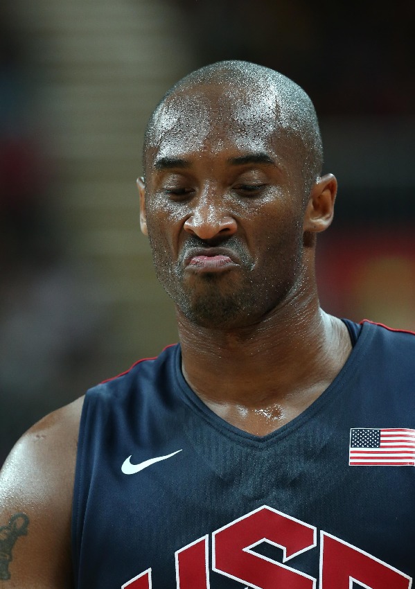 篮球——科比表情 8月4日,美国队球员科比在比赛中。当日,在2012伦敦奥运会男子篮球小组赛中,美国队以99比94战胜立陶宛队。