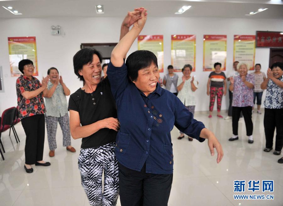 8月16日,支芬(前右)和高碑店村合唱团的团员们一起跳舞。高碑店村地处北京市东长安街延长线上,距天安门仅8公里。伴随着城市化进程,全村2300亩耕地只剩下80亩工业用地,没有一分耕地,成了一个“叫农村无农业、称农民无耕地、农转居无工作”的“三无”村。2002年5月,支芬调至高碑店村任党总支书记。作为京郊大村高碑店的“当家人”,支芬实在算不上能说会道。但正是凭借一股实在劲,支芬用10年时间,将这个一度发展迟缓的千年古村,发展成新农村建设的一个样板。用她的话说,凭的就是“实干”。在支芬的带领下,高碑店村先后被授予“全国民主法治示范村”“全国绿色小康村”“北京最美的乡村”等荣誉称号,她个人也被评选为“全国劳动模范”“全国优秀党务工作者”和“全国三八红旗手”,还参加了北京残奥会的火炬传递。新华社记者 李文 摄