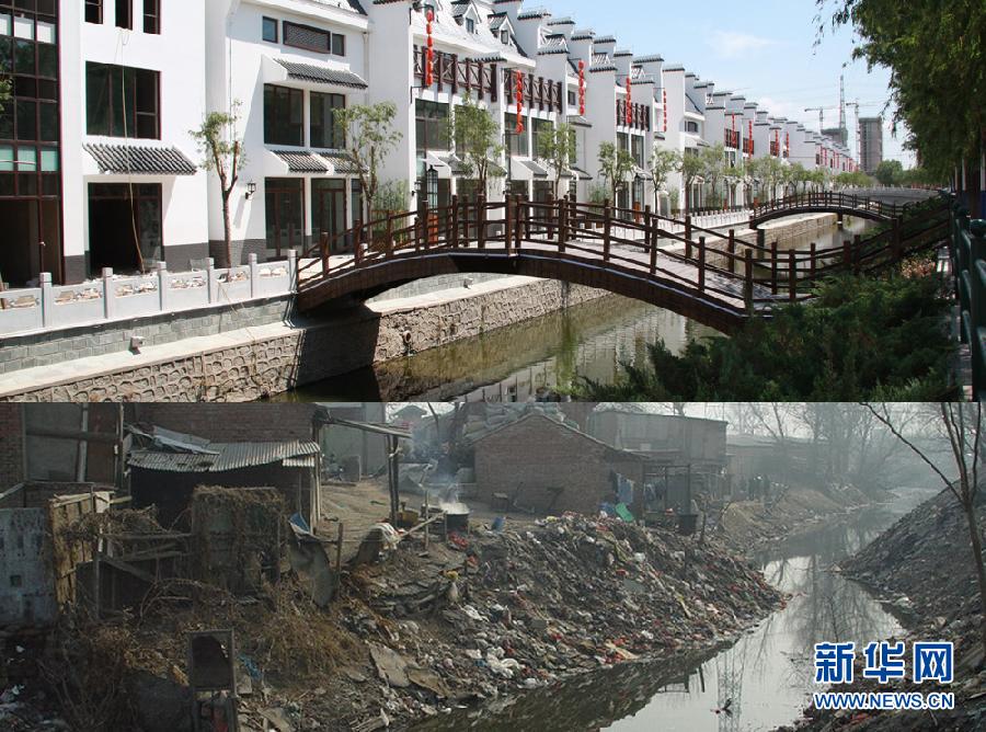 这张拼版照片显示的是:高碑店村灌渠整治后的景象(上图)和高碑店村灌渠整治前的景象(下图)。高碑店村地处北京市东长安街延长线上,距天安门仅8公里。伴随着城市化进程,全村2300亩耕地只剩下80亩工业用地,没有一分耕地,成了一个“叫农村无农业、称农民无耕地、农转居无工作”的“三无”村。2002年5月,支芬调至高碑店村任党总支书记。作为京郊大村高碑店的“当家人”,支芬实在算不上能说会道。但正是凭借一股实在劲,支芬用10年时间,将这个一度发展迟缓的千年古村,发展成新农村建设的一个样板。用她的话说,凭的就是“实干”。在支芬的带领下,高碑店村先后被授予“全国民主法治示范村”“全国绿色小康村”“北京最美的乡村”等荣誉称号,她个人也被评选为“全国劳动模范”“全国优秀党务工作者”和“全国三八红旗手”,还参加了北京残奥会的火炬传递。新华社发