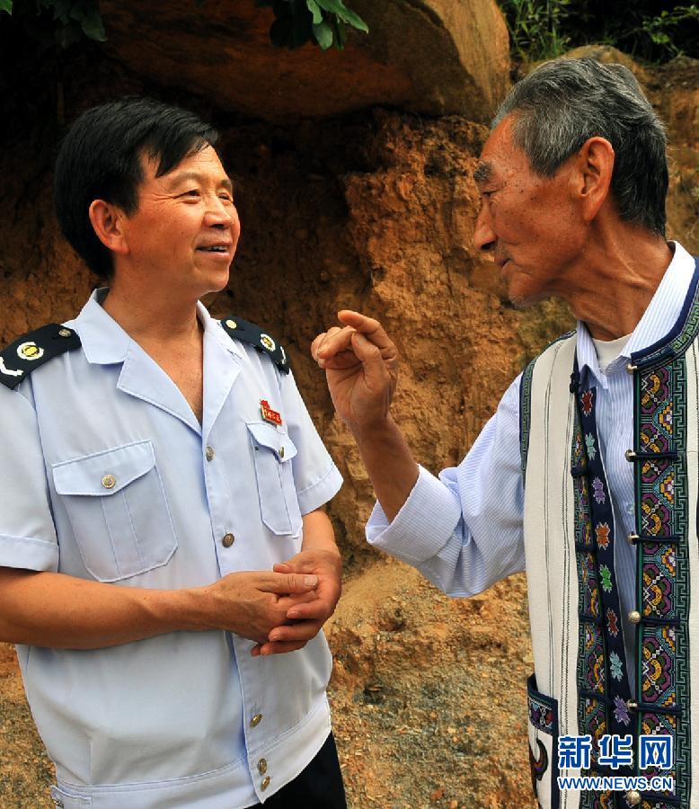 孙显才(左)在马豆沟村向当地彝族群众了解山道路况(7月25日摄)。孙显才是云南省禄劝彝族苗族自治县地税局一名普通的税收管理员。26年来,他利用周末和节假日,累计为当地群众修筑、打通、拓宽了9段约50公里山区道路,自己出钱并组织村民搭建乡村小桥4座,开挖排水沟5条。 1964年,孙显才出生在该县马鹿塘乡普德村,1987年1月开始在乡财政所工作。从那时起,他义务赡养村中两位孤寡老人,直至2004年最后一位老人离世。调到县城担任税务员后,他又利用节假日为周边的马豆沟、大红山村的农民修筑了一条上山背水路。近年来,孙显才默默服务群众的事迹渐渐被人知晓,他也先后获得“优秀共产党员”“优秀公务员”等光荣称号。 新华社记者 陈海宁摄
