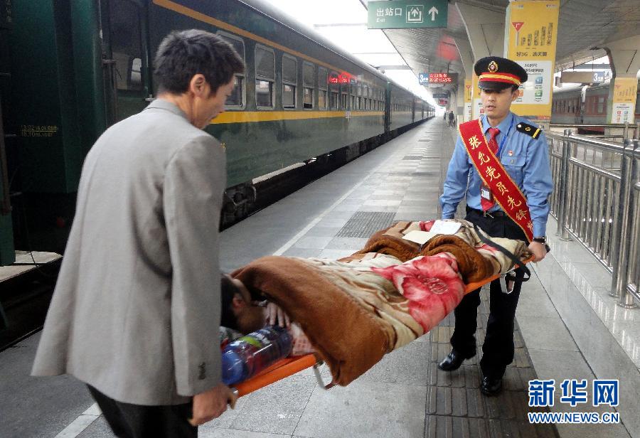 4月2日,张允在成都火车站服务旅客。今年37岁的共产党员张允是成都铁路局成都车站客运车间的工作人员。从事旅客服务工作以来,他坚持“有困难找张允”的服务理念,在工作中总结出巡视、观察、引导、帮扶等特色服务方法,热心为旅客服务。2011年10月,成都铁路局以他的名字命名,成立了一支由13名铁路人员组成的“张允先锋岗”,更好地服务旅客,受到旅客的好评。新华社发