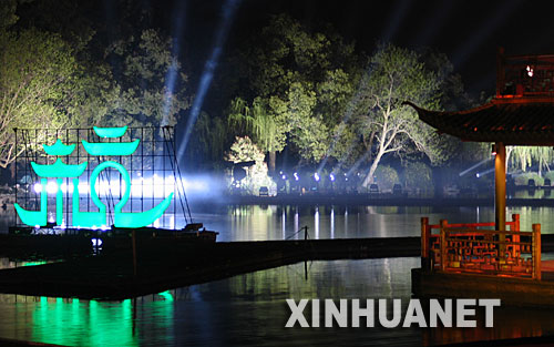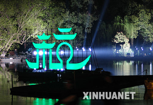 3月28日,“杭州城标”在西湖揭晓。新城标是以汉字“杭”的篆书进行演变,将航船、城廓、建筑、园林、拱桥等诸多要素融入其中。新华社记者方益波摄