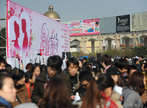 2011年2月18日早上,由北仑新闻网和共青团北仑区委主办的“港城有约”千人公益交友派对活动,在凤凰山主题公园外的大广场上举行。来自整个宁波市范围内近千名单身男女和家长参与了此次活动。