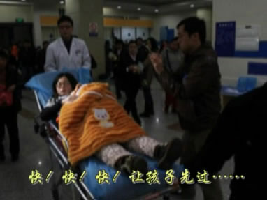 20时38分,在一辆牌号为沪E3082的警车的护送下,救护车停在了位于闵行万源路上复旦大学附属儿科医院急诊室门前,在短暂的急诊之后转入传染病病房。