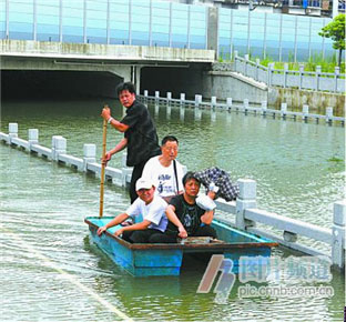 “海葵”肆虐甬城。台风过后,我市多处街口和低洼地区受淹。海曙三市路下穿铁路桥段,近100米路段严重积水,最深处有1米多深,给过往行人带来很大不便。