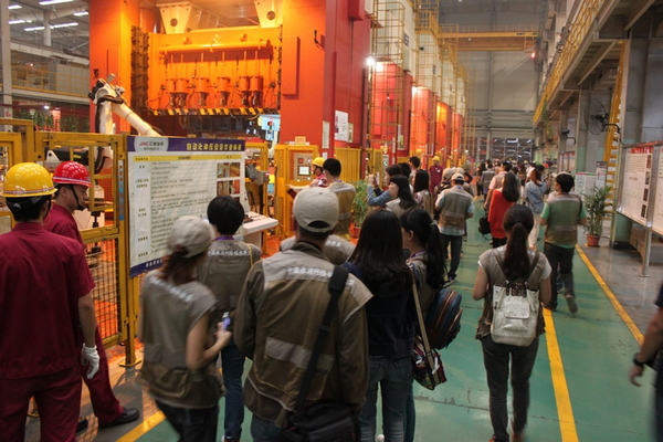 推介活动后,网媒记者们在工作人员的引导下参观了江淮乘用车一厂、二厂的冲压车间、总装车间。在乘用车冲压车间,先进中型的冲压机床,一气合成的冲压面板吸引了记者们驻足观看,纷纷举起相机、手机,记录奇妙的汽车工业技术。来自中国宁波网的记者在微博上兴奋地表示,冲压车间里的一切简直就像在变形金刚。一位参与此次媒体行活动的网友则表示,完全被车间的庞大规模所震撼。