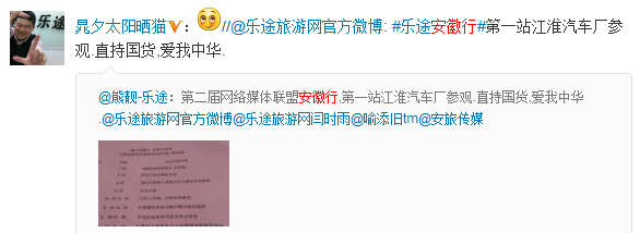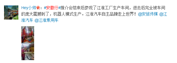 来自乐途旅游网的记者则表示,支持国货,支持自主品牌江淮。