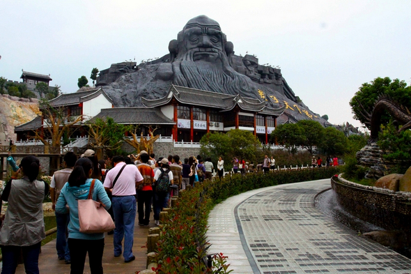在“时光大道”景点,各个历史时期最具代表性的21位人物雕塑,按1∶1仿青铜制作,分列两侧,并按照历史顺序依次展开——从盘古开天、三皇五帝开始,到春秋战国……延伸到宋元明清,再到孙中山的“天下为公”,毛泽东的“江山如此多娇”。与此同时,旁边“千米浮雕文化墙”上,历史中的大事件也一一“上演”,让游客仿佛阅读了一本中国通史。