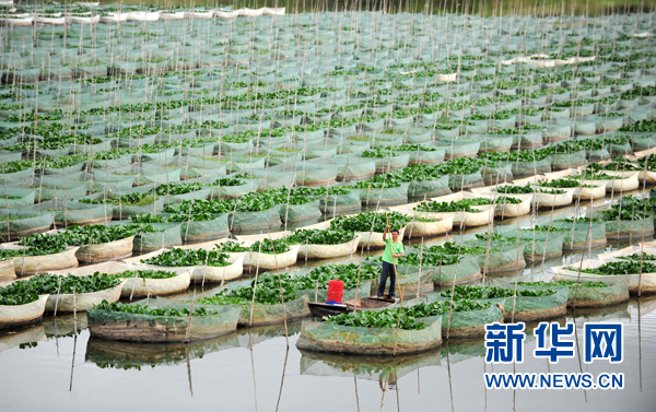 鄱阳湖畔的江西省余干县瑞洪镇驾湖村农民在管理网箱养殖的鳝鱼(2012年9月9日摄)。近年来,余干县充分利用湖港、湖汊等水质好、无污染的水资源,大力推广网箱养鳝、鱼虾混养等特种养殖模式。目前,该县养殖基地的网箱已达到7万多个,每个网箱能给当地农民带来3000多元的年收入。新华社记者 周科 摄