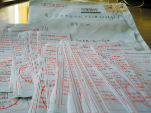 昨天上午9:50,市慈善总会蔡怀书的办公桌上,厚厚一沓汇款收据呈扇形排开。挂号信的封面上,是黑水笔写出的娟秀字体,落款地址和姓名为“宁波市蓝天路3000号 然然”。邮戳显示,该信是12月1日18时从中山东路寄出,第二天早上8点经西河街投递抵达。