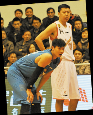 站在王治郅身边,王哲林(左)终究还是显得稚嫩了一些。