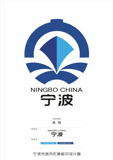 张弘(安徽) “宁”字、书、船、水、拱门、彩带为设计元素。圆形代表太阳,象征宁波生生不息的发展。