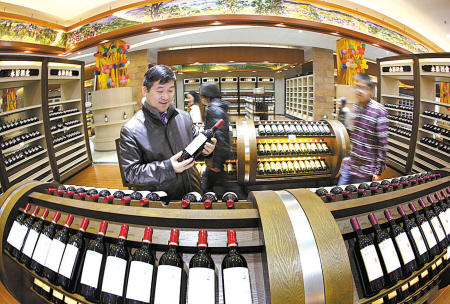 春节来临之际,到宁波保税区进口葡萄酒专业市场选购葡萄酒的市民络绎不绝。(胡建华 陈飞跃 摄)