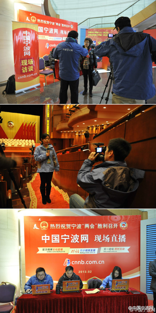 中国宁波网19日讯 据中国宁波网官方微博发布:宁波市政协十四届二次会议今日9时开幕。图为中国宁波网工作人员准备直播中。