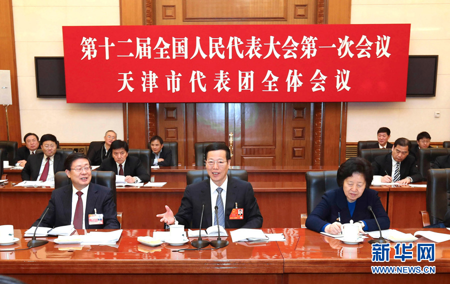 3月6日,中共中央政治局常委张高丽参加十二届全国人大一次会议天津代表团的审议。 新华社记者 庞兴雷 摄