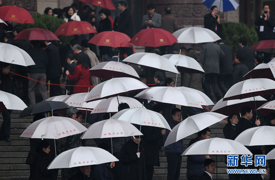 3月12日, 全国政协十二届一次会议在人民大会堂举行闭幕会。当日,一场春雨“不期而至”,为人民大会堂前增添了许多独特的“风景”。新华网 翟子赫 摄