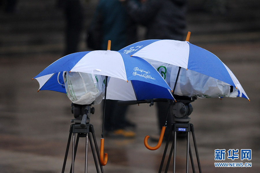 3月12日, 全国政协十二届一次会议在人民大会堂举行闭幕会。当日,一场春雨“不期而至”,为人民大会堂前增添了许多独特的“风景”。新华网 翟子赫 摄
