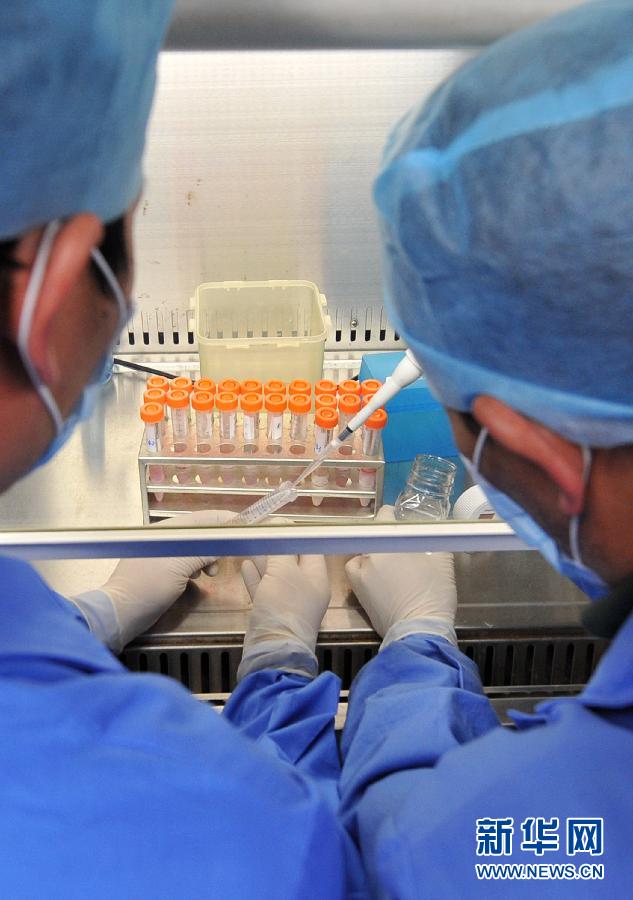 【云南加强H7N9禽流感防控和监测】 4月5日,云南省疾病预防控制中心的两名工作人员在流感综合实验室内进行日常检测工作。当日,记者从云南省疾病预防控制中心了解到,云南目前尚未发现H7N9禽流感病例。云南省目前的防控措施主要是通过覆盖全省的19家流感哨点医院进行监测,凡是有发热、白细胞降低等异常症状的患者均要报告。目前,覆盖云南全省的17个实验室已经做好病毒检测的准备工作,都有能力检测出H7N9病毒。新华社记者 蔺以光 摄