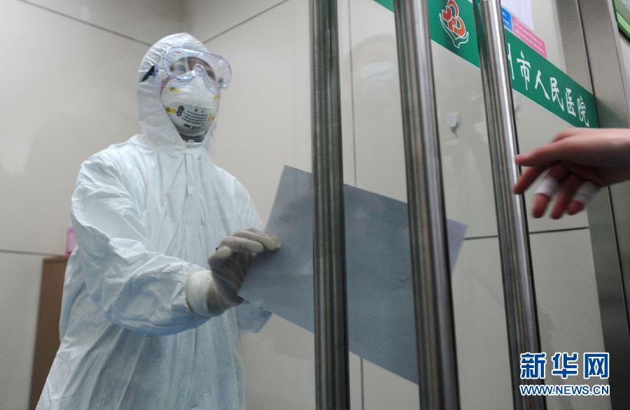 4月8日,在亳州市人民医院,两名医护人员在递送感染H7N9禽流感患者的医嘱单子。当日,记者走进安徽省亳州市人民医院重症监护室,用镜头记录了1例人感染H7N9禽流感确诊病例的治疗过程。患者李某,男,55岁,亳州市谯城区人,从事活禽销售与宰杀工作。3月28日患者发病,4月1日因病情加重至亳州市人民医院治疗。4月6日,安徽省疾控中心实验室检测结果为H7N9禽流感病毒核酸阳性,4月7日,中国疾控中心实验室复核结果为H7N9禽流感病毒核酸阳性。目前,患者病情稳定。新华社记者 刘军喜 摄