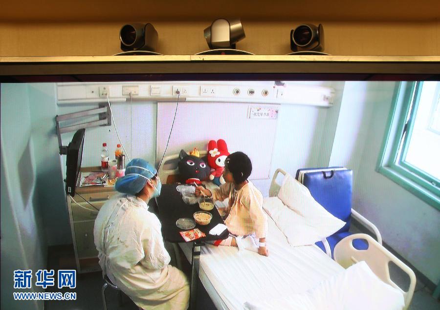 4月15日,地坛医院内监控画面显示的北京首例人感染H7N9确诊病例在普通病房内吃饭。当日,北京市卫生局表示,北京首例H7N9禽流感患者姚某病情恢复很顺利,医院对该患者进行了两次病毒检测发现均已转为阴性。这名患者不久或将出院。15日12时许,医院将患者姚某从重症监护病房转到普通病房。新华社记者 李文 摄