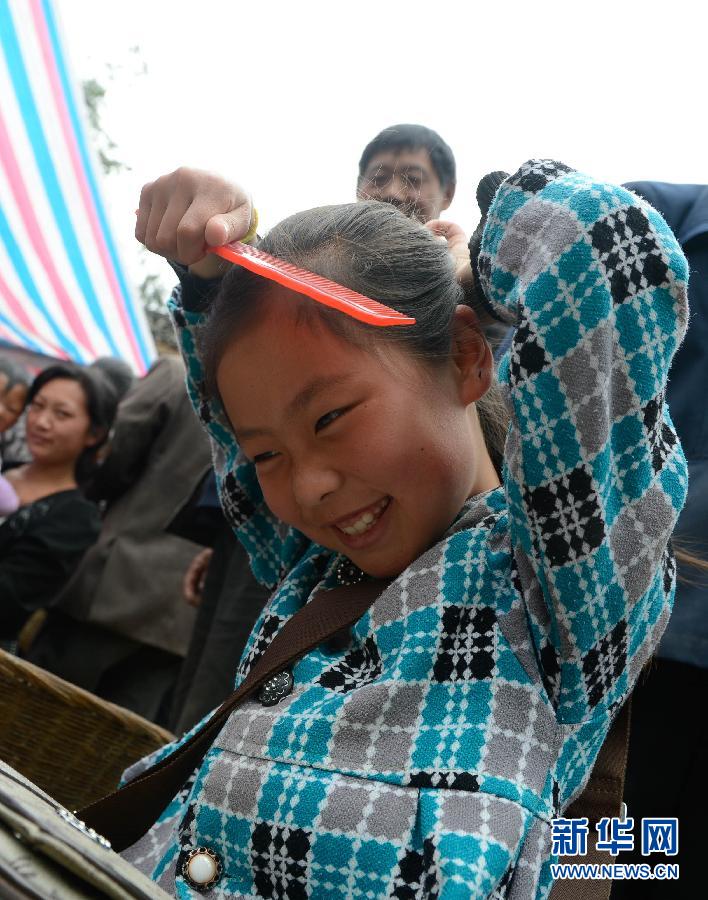 4月21日,太平镇春光村溪口上组,10岁的肖开希小朋友在整理自己的梳妆。目前,“4·20”地震芦山县太平镇仍然余震不断。但在灾区的乡村,在临时扎起的帐篷里,随时可见孩子们天真的笑脸。突如其来的灾难给他们的家园留下了印记,但没能阻挡笑容在他们脸上绽放。有孩子,有笑容,就有希望。 新华社记者 李桥桥摄